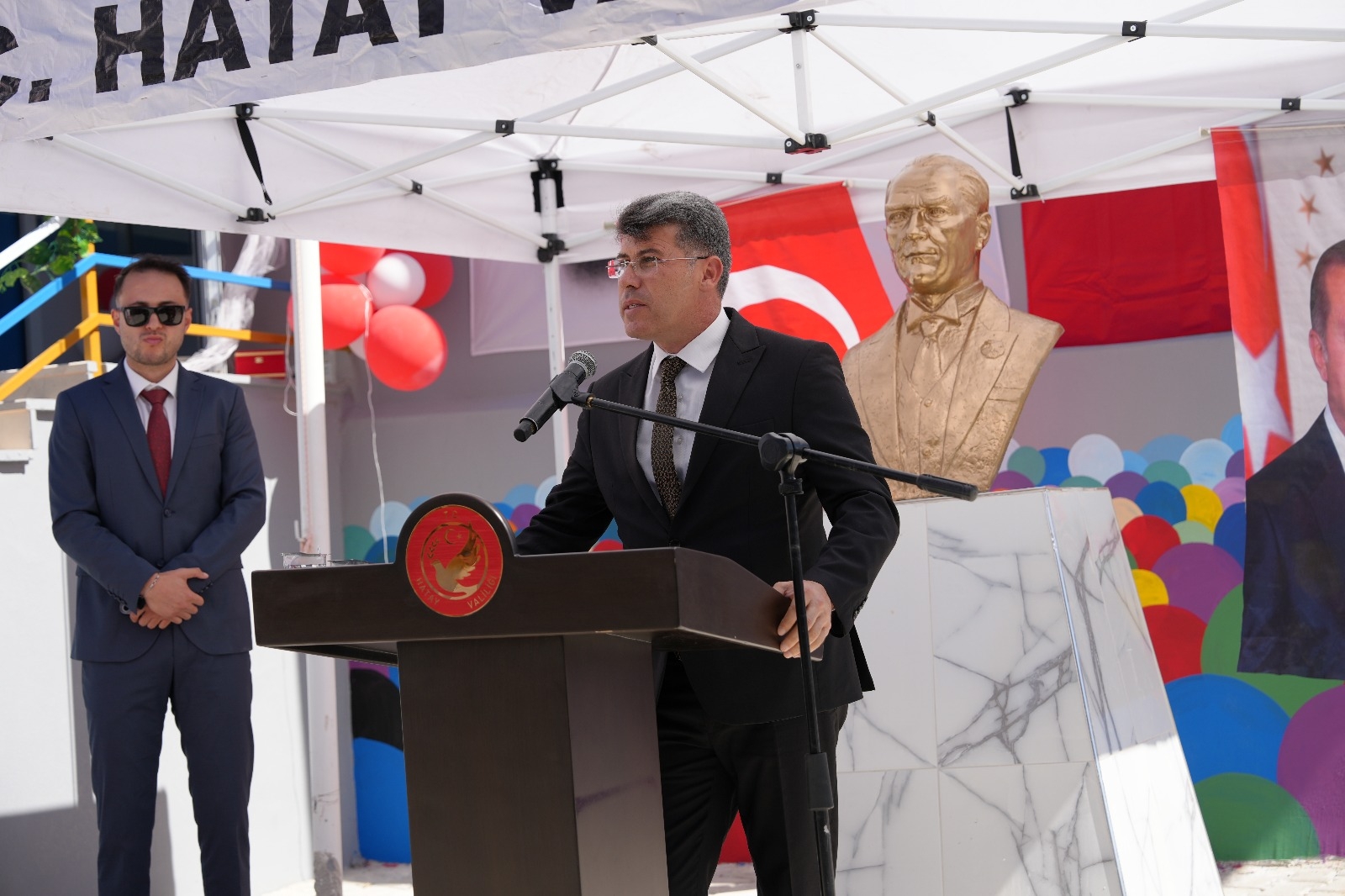 "1976 yılında tek öğretmenli küçük bir okul olarak hizmete başlayan bu kurum, yıllar içerisinde büyüyerek nice evladımıza eğitim yuvası olmuştur. Ancak hepimizin yüreğini yakan 6 Şubat depremlerinde ağır hasar görerek yıkılmıştır. Bugün, aynı topraklarda yeniden yükselen bu okulumuzla umutlarımızı, geleceğimizi ve yarınlarımızı da yeniden inşa etmiş bulunuyoruz.